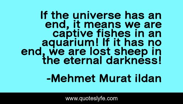 This page presents the quote "If the universe has an end, it means we are captive fishes in an aquarium! If it has no end, we are lost sheep in the eternal darkness!". Author of this quote is Mehmet Murat ildan. .