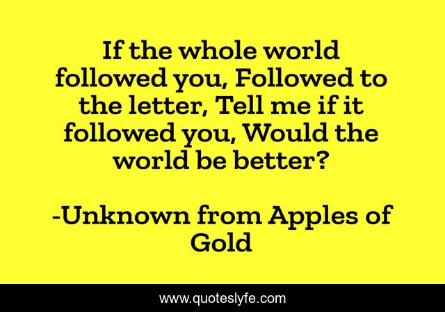 This page presents the quote "If the whole world followed you, Followed to the letter, Tell me if it followed you, Would the world be better?". Author of this quote is Unknown from Apples of Gold. .