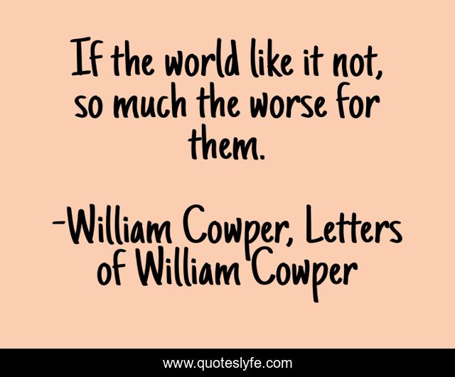 "William Cowper, Letters of William Cowper Quotes." Quoteslyfe.com, 2025. Fri. 05 Dec. 2025. <https://www.quoteslyfe.com/quote/If-the-world-like-it-not-so-226115>.