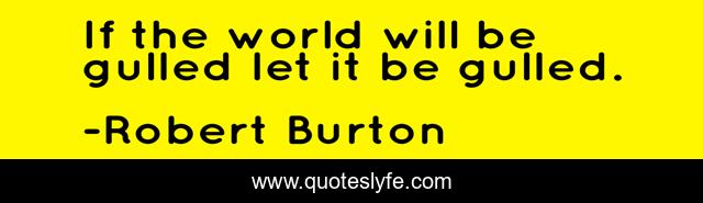This page presents the quote "If the world will be gulled let it be gulled.". Author of this quote is Robert Burton. .