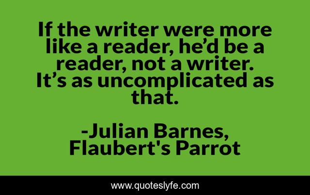This page presents the quote "If the writer were more like a reader, he’d be a reader, not a writer. It’s as uncomplicated as that.". Author of this quote is Julian Barnes, Flaubert's Parrot. This quote is about readers, writers, creativity, writing,.