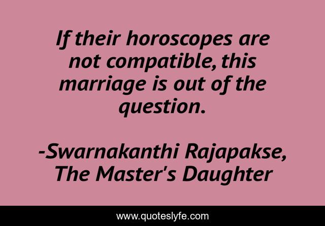 "Swarnakanthi Rajapakse, The Master's Daughter Quotes." Quoteslyfe.com, 2025. Sat. 06 Dec. 2025. <https://www.quoteslyfe.com/quote/If-their-horoscopes-are-not-compatible-this-77387>.