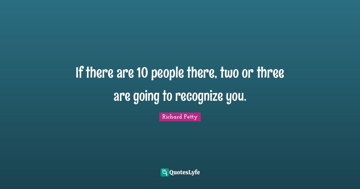 This page presents the quote "If there are 10 people there, two or three are going to recognize you.". Author of this quote is Richard Petty. This quote is about three, people, two,.