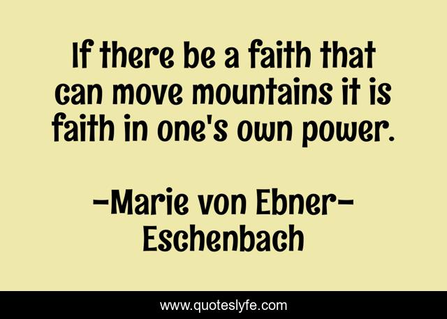 This page presents the quote "If there be a faith that can move mountains it is faith in one's own power.". Author of this quote is Marie von Ebner-Eschenbach. This quote is about self, confidence,.