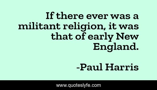 This page presents the quote "If there ever was a militant religion, it was that of early New England.". Author of this quote is Paul Harris. This quote is about early, new, new england,.