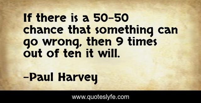 This page presents the quote "If there is a 50-50 chance that something can go wrong, then 9 times out of ten it will.". Author of this quote is Paul Harvey. This quote is about go, something,.