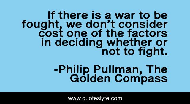 This page presents the quote "If there is a war to be fought, we don’t consider cost one of the factors in deciding whether or not to fight.". Author of this quote is Philip Pullman, The Golden Compass. .