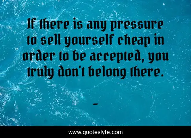 This page presents the quote "If there is any pressure to sell yourself cheap in order to be accepted, you truly don't belong there.". Author of this quote is . This quote is about seling-yourself-cheap, being-accepted, pressures, edmond-mbiaka, belong, pressure, don-t-sell-yourself-cheap,.