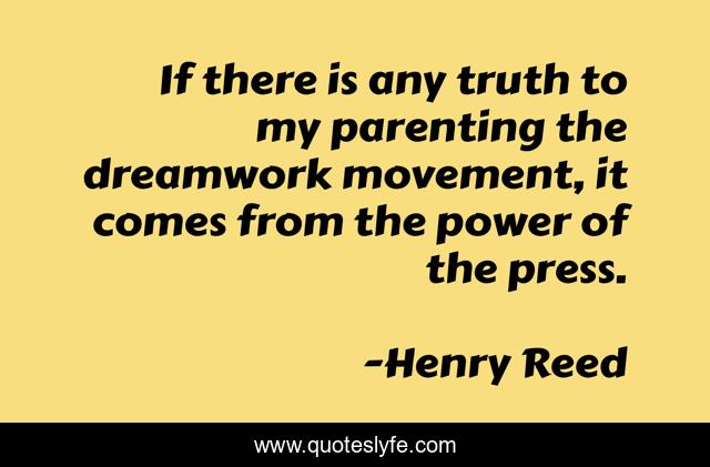 This page presents the quote "If there is any truth to my parenting the dreamwork movement, it comes from the power of the press.". Author of this quote is Henry Reed. This quote is about truth, power, movement,.