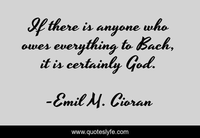 This page presents the quote "If there is anyone who owes everything to Bach, it is certainly God.". Author of this quote is Emil M. Cioran. This quote is about aphorisms, music, bach, theology,.