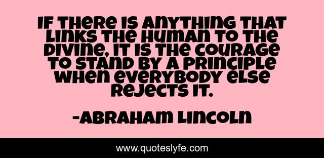 This page presents the quote "If there is anything that links the human to the divine, it is the courage to stand by a principle when everybody else rejects it.". Author of this quote is Abraham Lincoln. This quote is about moral-courage, dissent, public-opinion, religion, inspirational, enthusiasm,.