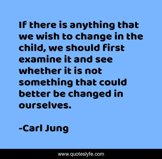 This page presents the quote "If there is anything that we wish to change in the child, we should first examine it and see whether it is not something that could better be changed in ourselves.". Author of this quote is Carl Jung. This quote is about better, wish, child,.