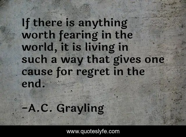 This page presents the quote "If there is anything worth fearing in the world, it is living in such a way that gives one cause for regret in the end.". Author of this quote is A.C. Grayling. This quote is about life, death, sadness-loneliness, regret, happiness,.