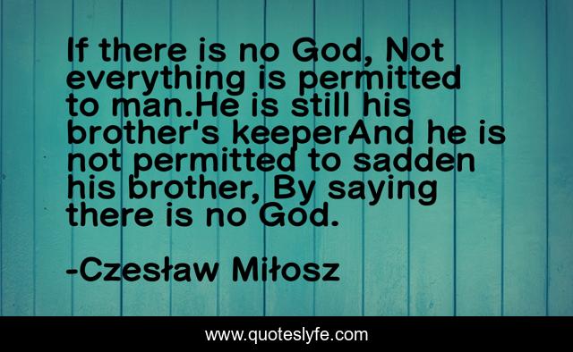 This page presents the quote "If there is no God, Not everything is permitted to man.He is still his brother's keeperAnd he is not permitted to sadden his brother, By saying there is no God.". Author of this quote is Czesław Miłosz. .