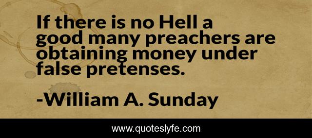 This page presents the quote "If there is no Hell a good many preachers are obtaining money under false pretenses.". Author of this quote is William A. Sunday. .