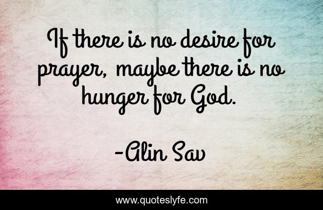 This page presents the quote "If there is no desire for prayer, maybe there is no hunger for God.". Author of this quote is Alin Sav. This quote is about spiritual, religion-and-philoshophy,.