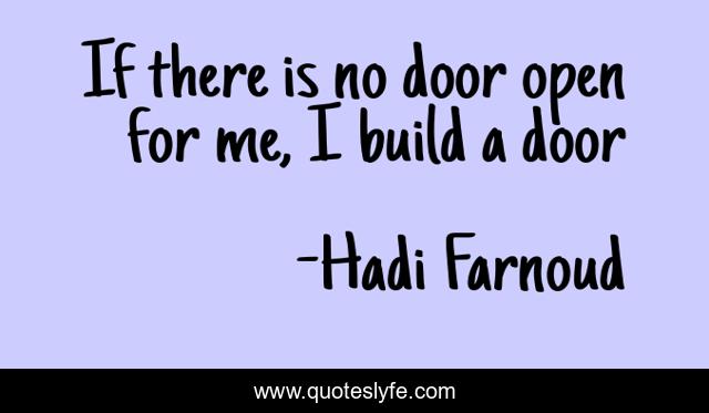 This page presents the quote "If there is no door open for me, I build a door". Author of this quote is Hadi Farnoud. This quote is about confidence, positive, motivational, optimistic, inspirational, enthusiasm, luck,.