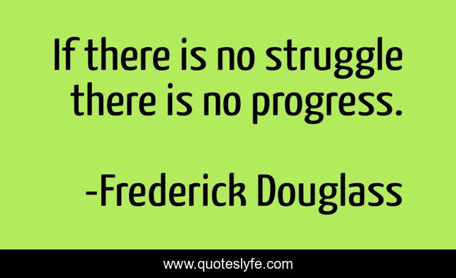This page presents the quote "If there is no struggle there is no progress.". Author of this quote is Frederick Douglass. This quote is about motivation, honesty, positive, motivational, slavery, inspirational, optimistic, truth, enthusiasm,.
