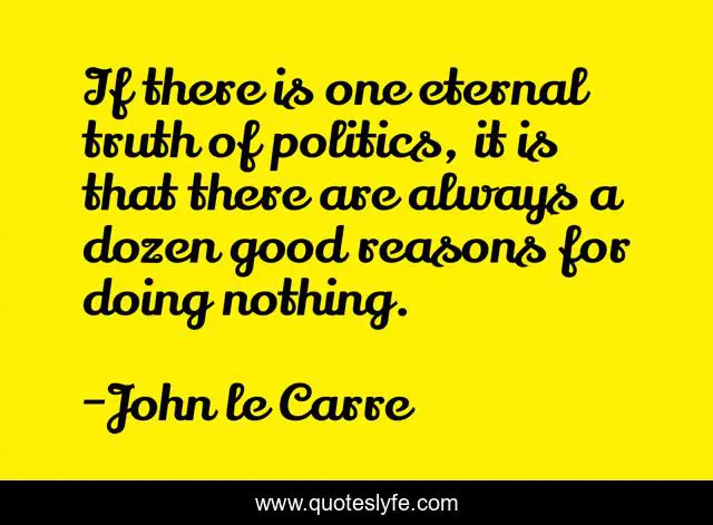 This page presents the quote "If there is one eternal truth of politics, it is that there are always a dozen good reasons for doing nothing.". Author of this quote is John le Carre. This quote is about politics, good,.