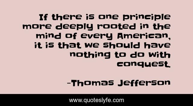This page presents the quote "If there is one principle more deeply rooted in the mind of every American, it is that we should have nothing to do with conquest.". Author of this quote is Thomas Jefferson. .