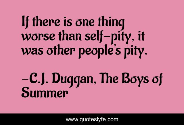 This page presents the quote "If there is one thing worse than self-pity, it was other people's pity.". Author of this quote is C.J. Duggan, The Boys of Summer. This quote is about romance, boys, life, young-adult, summer,.