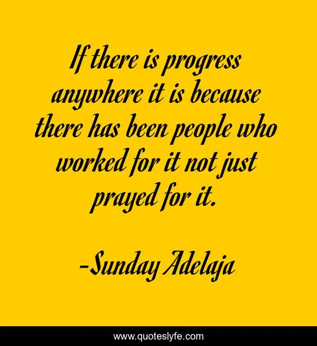 This page presents the quote "If there is progress anywhere it is because there has been people who worked for it not just prayed for it.". Author of this quote is Sunday Adelaja. This quote is about pray, progress, people,.