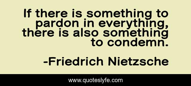This page presents the quote "If there is something to pardon in everything, there is also something to condemn.". Author of this quote is Friedrich Nietzsche. This quote is about everything, something,.
