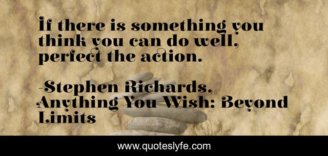 This page presents the quote "If there is something you think you can do well, perfect the action.". Author of this quote is Stephen Richards, Anything You Wish: Beyond Limits. This quote is about self-limiting-beliefs, stephen-richards, self-help, self-doubt, self-improvement,.