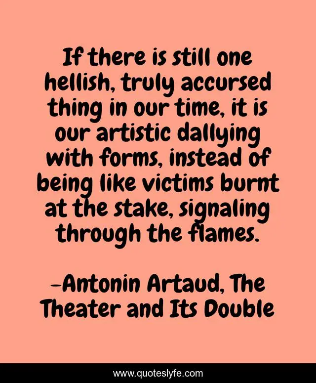 "Antonin Artaud, The Theater and Its Double Quotes." Quoteslyfe.com, 2025. Fri. 05 Dec. 2025. <https://www.quoteslyfe.com/quote/If-there-is-still-one-hellish-truly-93179>.