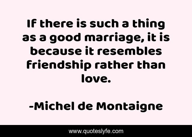 This page presents the quote "If there is such a thing as a good marriage, it is because it resembles friendship rather than love.". Author of this quote is Michel de Montaigne. This quote is about marriage, friendship, love, affection,.