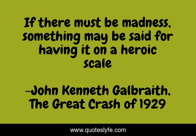 "John Kenneth Galbraith, The Great Crash of 1929 Quotes." Quoteslyfe.com, 2025. Fri. 05 Dec. 2025. <https://www.quoteslyfe.com/quote/If-there-must-be-madness-something-may-220950>.