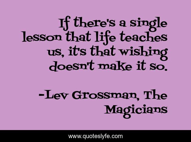 This page presents the quote "If there's a single lesson that life teaches us, it's that wishing doesn't make it so.". Author of this quote is Lev Grossman, The Magicians. This quote is about life-lessons, wishes, life-truths, reality-check,.