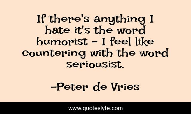This page presents the quote "If there's anything I hate it's the word humorist - I feel like countering with the word seriousist.". Author of this quote is Peter de Vries. This quote is about humorists, humour,.