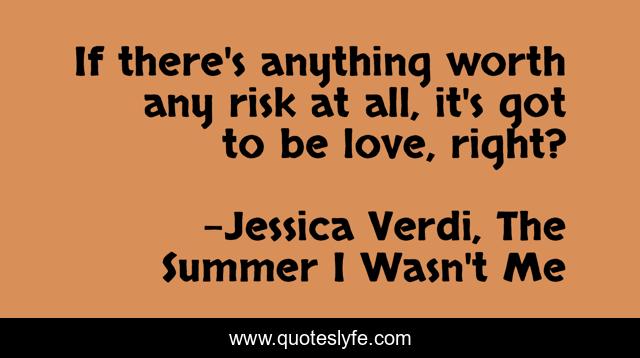 "Jessica Verdi, The Summer I Wasn't Me Quotes." Quoteslyfe.com, 2025. Sun. 07 Dec. 2025. <https://www.quoteslyfe.com/quote/If-there-s-anything-worth-any-risk-241223>.