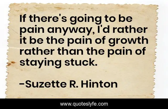 This page presents the quote "If there's going to be pain anyway, I'd rather it be the pain of growth rather than the pain of staying stuck.". Author of this quote is Suzette R. Hinton. This quote is about growth, pain, wisdom,.