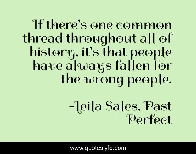 This page presents the quote "If there's one common thread throughout all of history, it's that people have always fallen for the wrong people.". Author of this quote is Leila Sales, Past Perfect. This quote is about past-perfect, romance, love, affection,.