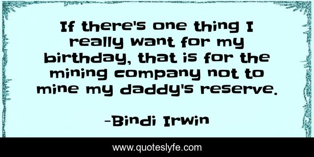 This page presents the quote "If there's one thing I really want for my birthday, that is for the mining company not to mine my daddy's reserve.". Author of this quote is Bindi Irwin. This quote is about company, mining,.
