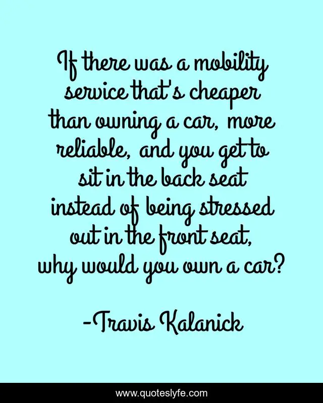 This page presents the quote "If there was a mobility service that's cheaper than owning a car, more reliable, and you get to sit in the back seat instead of being stressed out in the front seat, why would you own a car?". Author of this quote is Travis Kalanick. This quote is about why, service,.