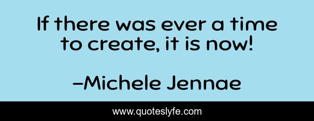 This page presents the quote "If there was ever a time to create, it is now!". Author of this quote is Michele Jennae. This quote is about change-the-world, the-creative-imperative, art, create-your-life, create, creativity, imagination, art-is-work, inspiration,.