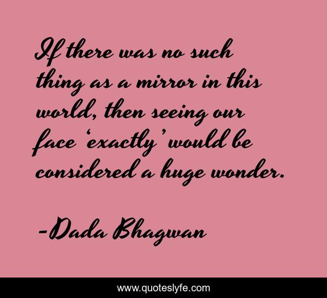 This page presents the quote "If there was no such thing as a mirror in this world, then seeing our face ‘exactly’ would be considered a huge wonder.". Author of this quote is Dada Bhagwan. This quote is about world, spiritual, exactly, wonder,.
