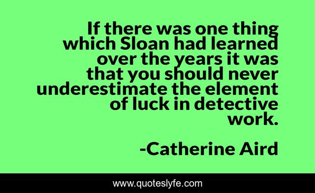 This page presents the quote "If there was one thing which Sloan had learned over the years it was that you should never underestimate the element of luck in detective work.". Author of this quote is Catherine Aird. This quote is about detective, luck,.