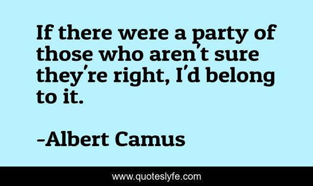 This page presents the quote "If there were a party of those who aren't sure they're right, I'd belong to it.". Author of this quote is Albert Camus. This quote is about camus, ethics, philosophy, tony-judt,.