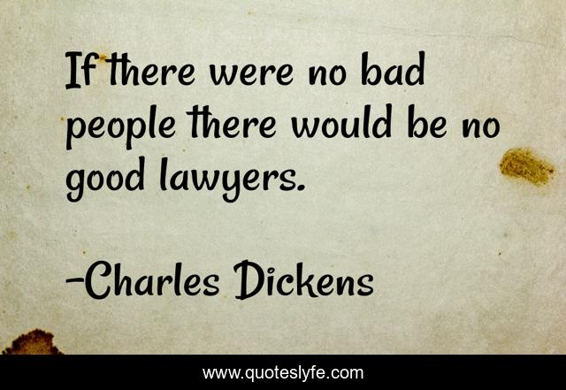 This page presents the quote "If there were no bad people there would be no good lawyers.". Author of this quote is Charles Dickens. This quote is about law, lawyers,.