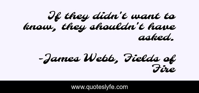This page presents the quote "If they didn't want to know, they shouldn't have asked.". Author of this quote is James Webb, Fields of Fire. This quote is about vietnam, marine, war,.