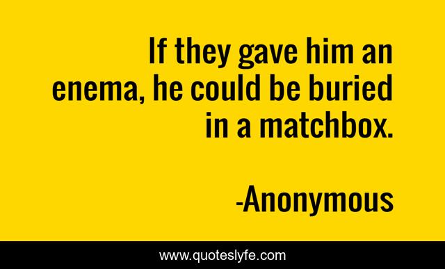 This page presents the quote "If they gave him an enema, he could be buried in a matchbox.". Author of this quote is Anonymous. This quote is about stupidity, unintelligent,.