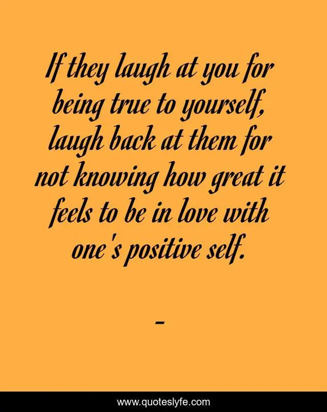This page presents the quote "If they laugh at you for being true to yourself, laugh back at them for not knowing how great it feels to be in love with one's positive self.". Author of this quote is . This quote is about being-true-to-yourself, edmond-mbiaka, one-s-positive-inner-self, one-s-positive-self,.