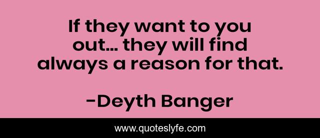 This page presents the quote "If they want to you out... they will find always a reason for that.". Author of this quote is Deyth Banger. This quote is about reasons, reason, out,.