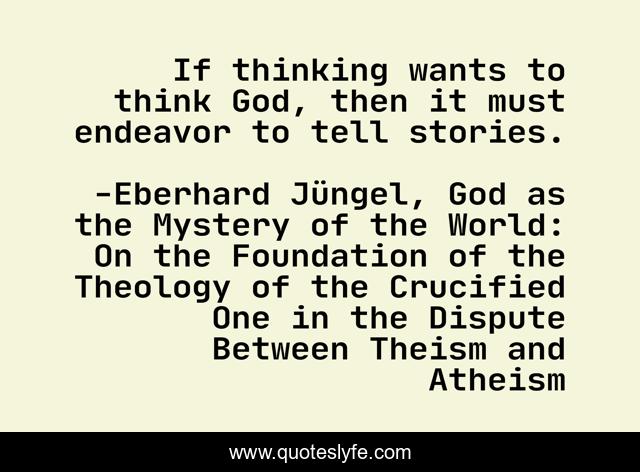 "Eberhard Jüngel, God as the Mystery of the World: On the Foundation of the Theology of the Crucified One in the Dispute Between Theism and Atheism Quotes." Quoteslyfe.com, 2025. Sat. 06 Dec. 2025. <https://www.quoteslyfe.com/quote/If-thinking-wants-to-think-God-then-201760>.