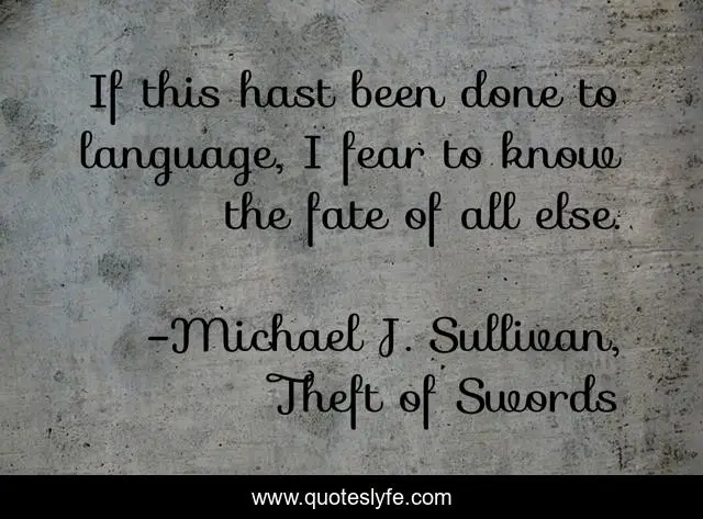 This page presents the quote "If this hast been done to language, I fear to know the fate of all else.". Author of this quote is Michael J. Sullivan, Theft of Swords. This quote is about language, esrahaddon,.