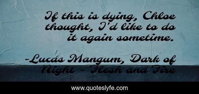 This page presents the quote "If this is dying, Chloe thought, I'd like to do it again sometime.". Author of this quote is Lucas Mangum, Dark of Night - Flesh and Fire. This quote is about fantasy, horror, dying-thoughts, dying,.